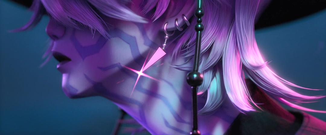 值得一提的是,Jinu这个角色其实不是完全的反派,根据他角色动机可以推导,他并不完全站在鬼马的立场,自身也受鬼马迫害,只是因为想跟鬼马条件交换而被动给反派卖命。所以他整部电影的动机其实都很矛盾,你可以说他是为了完成鬼马的使命居心剖测接近女主,但你也不能排除他在接近女主时夹杂了对女主的理解或者同情亦或是恻隐之心,这些都合理且成立,也使Jinu本身更复杂和立体。这就导致Jinu对Rumi说的每句话都很好品,站在上帝视角,Jinu的真心话和心机话一半一半,有时甚至让人分不清。