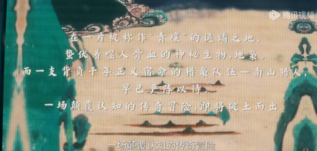 从海报到片头设计,无一不把中式与非遗元素连接在一起。n n先说海报,不是常见的男女主深情相望。而是以中式壁画勾勒出独特的世界观,天圆地方的构图设定,辅以青、橙、翠、赤、墨等几种颜色,构建了从上至下的不同景观。