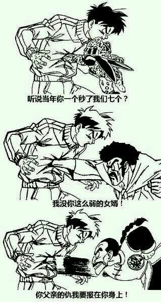 这一点就是龙珠超人设的最大缺陷——抓取一个人物的某个主要特征,并无限放大。一如悟空被贴上了战斗狂的标签,就甩不掉了。被同样麻烦困扰着的还有我们傲娇的赛亚人王子贝吉塔,化身护妻狂魔,类比悟饭,也不多讲了。