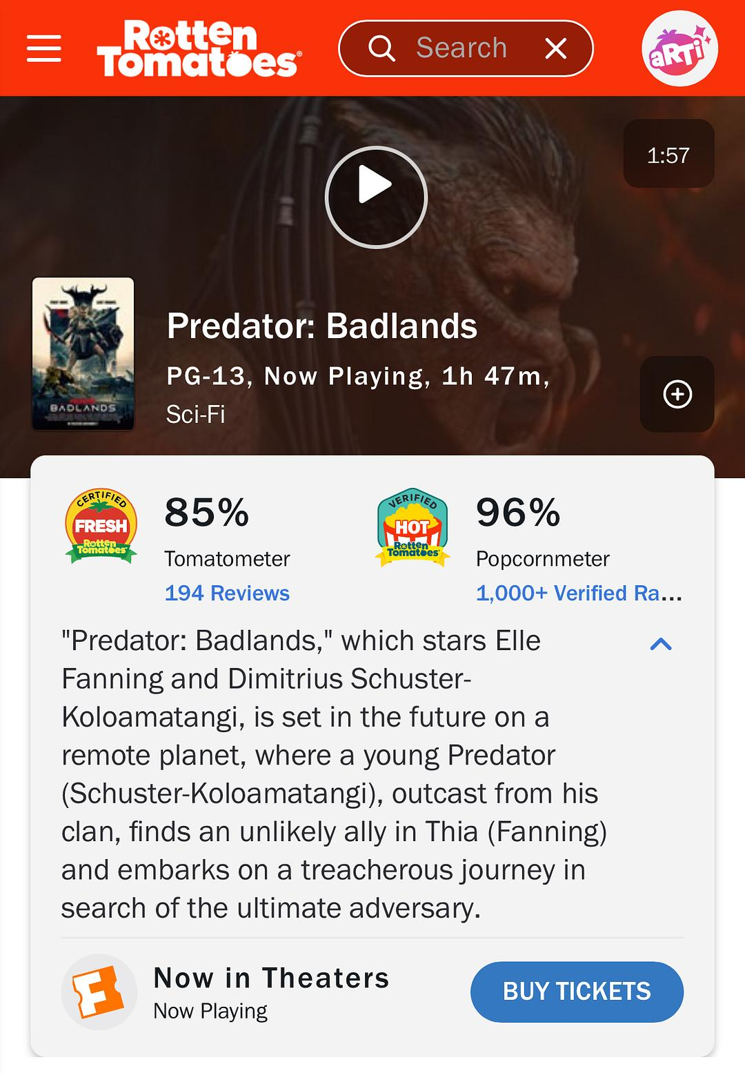 烂番茄评分也是达到了85%的新鲜程度(系列新鲜度最高就是本片导演丹特拉亨伯格今年早些时候推出的动画电影《铁血战士:杀戮之王》),大众爆米花????评分更是高达96%。n对比之前迪士尼的科幻电影《创战神》,大规模的网络宣发之下,评分和票房都欠佳。