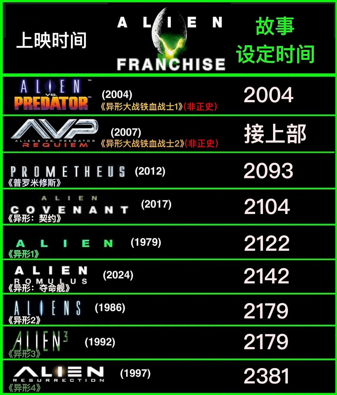其中,前两部最为经典,后来的两部《异形大战铁血战士》(简称AVP)虽然将最强物种和最完美生物的决斗搬上大银幕,但这两部AVP都未被官方纳入正史。n