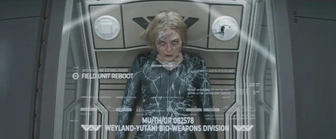 仿生人泰莎Tessa被唤醒后一直跟MU/TH/UR对话,“MU/TH/UR”是异形系列中维兰德公司的超级智能计算机。