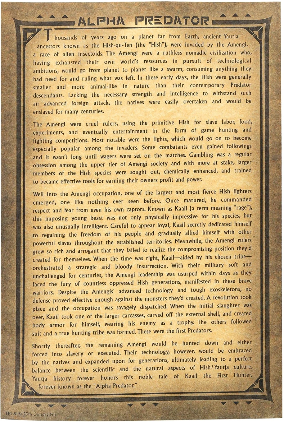 Kaail带领Hish战胜了Amengi,并继承了它们的高科技。他成为第一个铁血战士,也被称为“阿尔法铁血战士”。