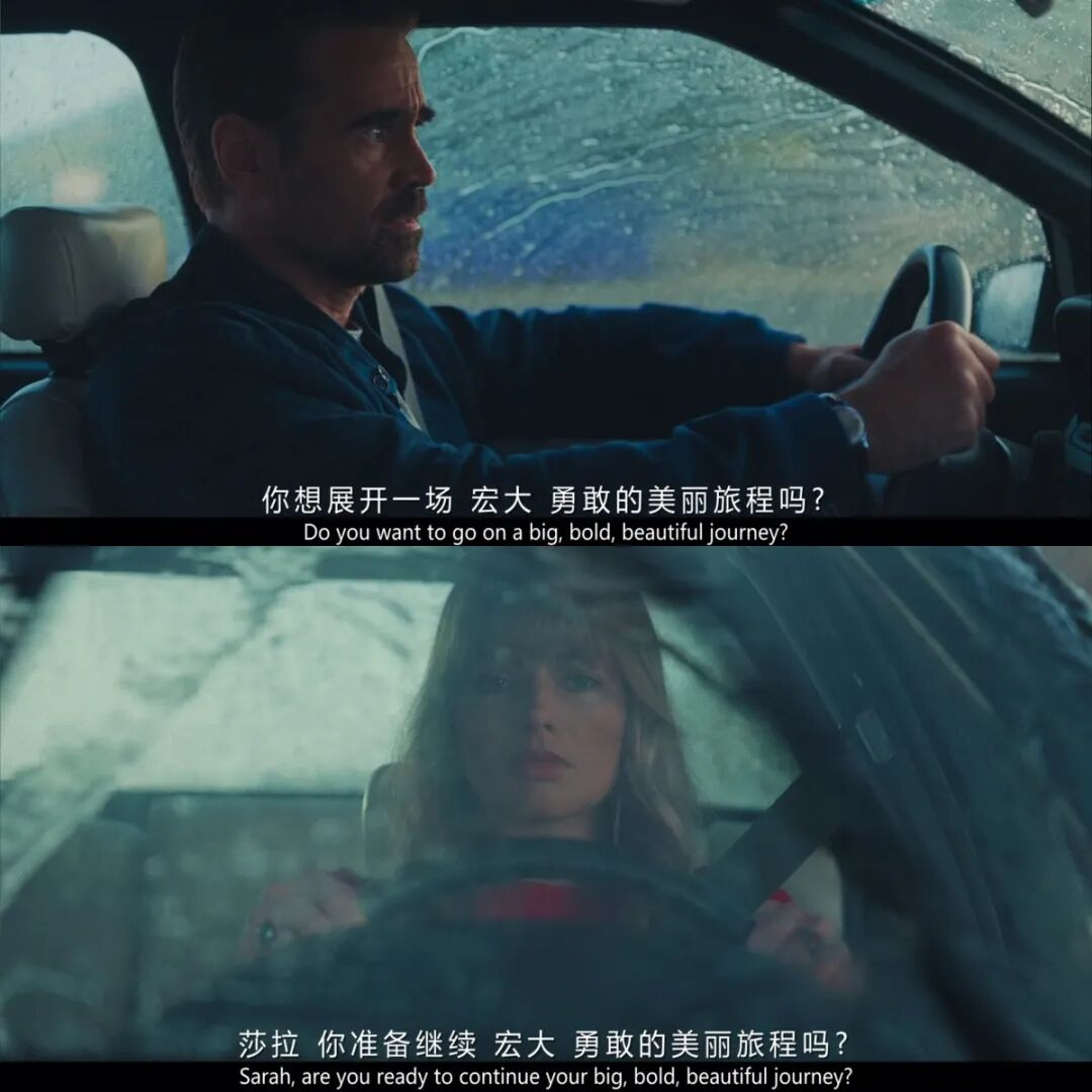 强推A big bold beautiful journey! 二刷依然被狠狠击中。这不是一部单纯的甜甜爱恋电影,而是一种“therapy式”的观影体验——它探讨的是人生轨迹、态度与价值观的塑造。ntn看这部电影的我,时而感动得眼眶湿润,时而被可爱的情节或表情逗笑。它提醒我们:学会心安泰然,才会真正去欣赏爱情与快乐;而爱情也不必轰轰烈烈,它可以细腻、可以陪伴、可以理解,和在各自克服性格弱的人生旅途中并肩前行。ntnMargot Robbie的表演太打动我了,把Sarah的细腻与脆弱演得淋漓尽致,层次感拉满。让我跟着她的角色一起笑、一起揪心。Colin Farrell则自然真诚,给电影添了温度。整组演员的表现都超在线,把角色演得特别真实ntn久石让的配乐与诗意的郭导的镜头美学更是一种纯粹的试听享受。久石让的音乐一出来我真的起鸡皮疙瘩。这也是我愿意在影院二刷的原因,音效真的太美太有感染力了。ntn这注定不是一部适合所有人的电影,或许太文艺、太诗意,但如果你带着品茶般的耐心去观影,它会悄悄渗进心里,如雨过天晴般在不知不觉中治愈你。