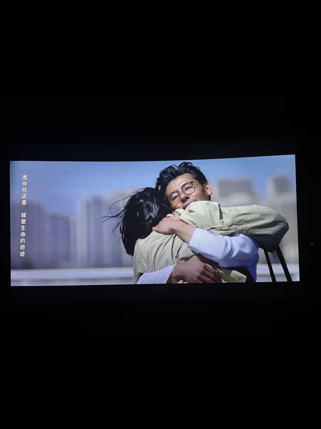 二人的拥抱中《至少还有你》的影片主题曲响起,黑屏,浮现字幕“真正相爱的人会告诉你,曾经有两个人,战胜过全世界”,确实是一个不可多得的影院moment。