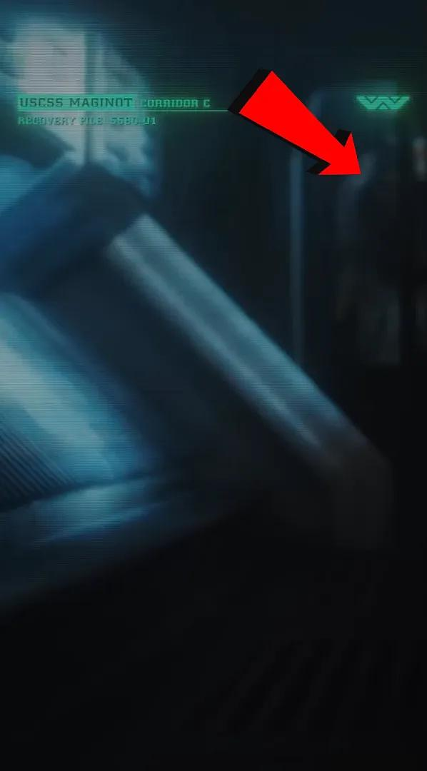 当视角转回马奇诺号,摄影机以异形视角滑过船舱通道,让我们看到异形眼中的世界,这种运镜方式直接致敬《异形3》。