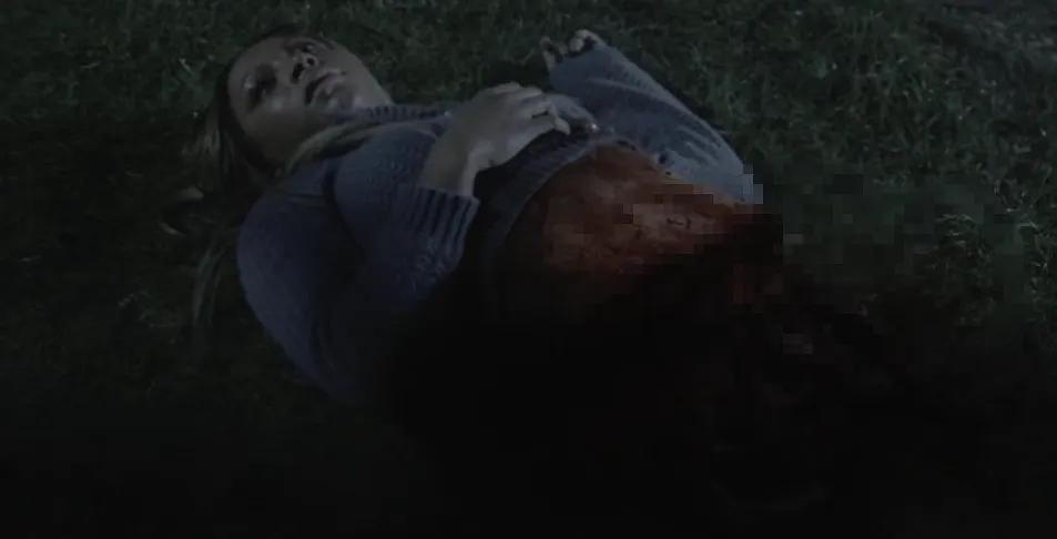 中段小孩的叔叔开车带一家人逃跑,前路被一根横倒的树干拦住,叔叔从车里拿根绳子可能准备拴在树干上吧,妈妈让小孩坐在驾驶室这儿,好声好气劝他开车,待会她也要下去帮忙,小孩说我不开我不开,妈妈说你必须开,一扭头巨鹿追上来,小孩赶紧踩油门,盘绕的绳子拖动正好套个圈把叔叔的脚给穿上,拖着叔叔脸朝下在地上疯狂摩擦,眼睁睁看着小孩一边开车逃跑一边愣是把叔叔活生生拖得血肉模糊…………