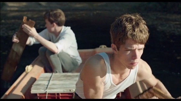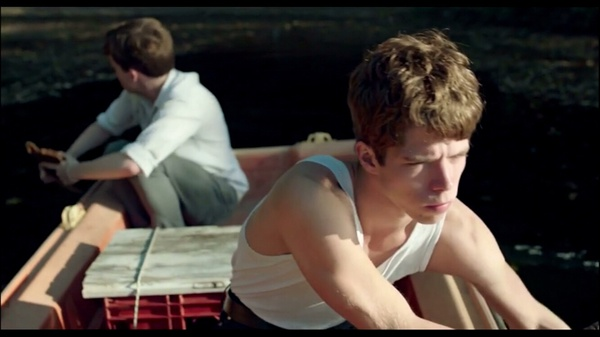 再如描写两人第一次见面时,镜头越过艾略特的肩膀,通过远近焦距的变化,展示出一种窥探的心情。更有趣的是两位男孩,在彼此熟识之后,镜头却总是有意将两人相隔,酒馆前的台阶和泛舟湖上都是前后落座,目之所及各不相同。