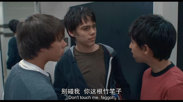 梅森在厕所被两个男同学欺负,多好的校园伤害题材,但也仅止于语言冲突和轻微的推搡。