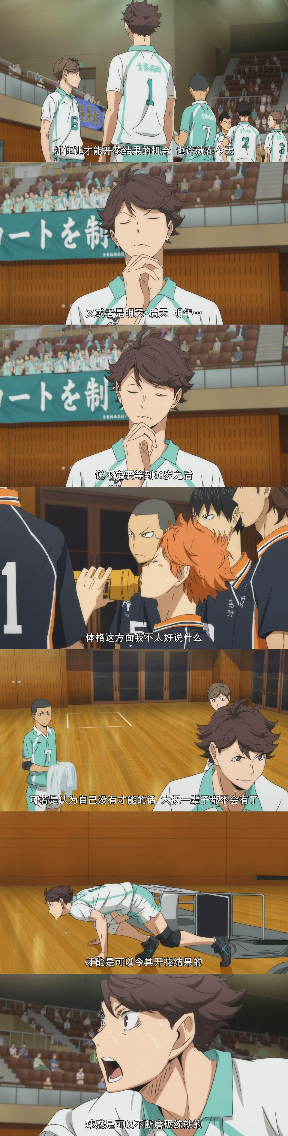 一开始觉得这样的结局太残酷,努力的人还是赢不了天才呀。但仔细想想,让及川败北的那群家伙,真的是完美的天才吗?日向有超强的反射神经和跳跃能力,身高却只有162;影山有绝对的控球能力和魄力,却是个一根筋;同样的,及川虽没有影山那样的球感,却有着超强的观察力,可以把队友的实力发挥到极致。