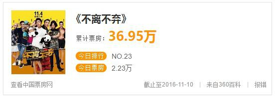 曹云金的《不离不弃》现在上映一周总票房不到40万,日票房不到2万,估计很多电影院要下线这部剧了吧。何云伟的《夺路而逃》怒砍30万票房,估计是张一山的功劳吧,毕竟《余罪》这么火,张一山的粉丝蹭蹭涨的。