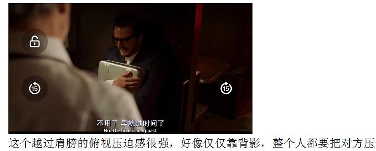 一段正常的正反打,如果景别的变化,那么可能是为了不无聊,但是有心的导演会把重点的对话也带入到景别变化中,同时很好的利用声效的变化来引起观众关注。