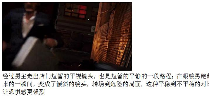 我们注意用色,第一张图绿白红招牌字体(店名红色警醒,白色drink乃他要贩卖给顾客的东西);绿白红在第二张图以意大利国旗出现,在门上出现;反打镜头,意大利国旗又在即将害人的电源背后出现。那么连着三个镜头出现的东西就必定代表意义了。