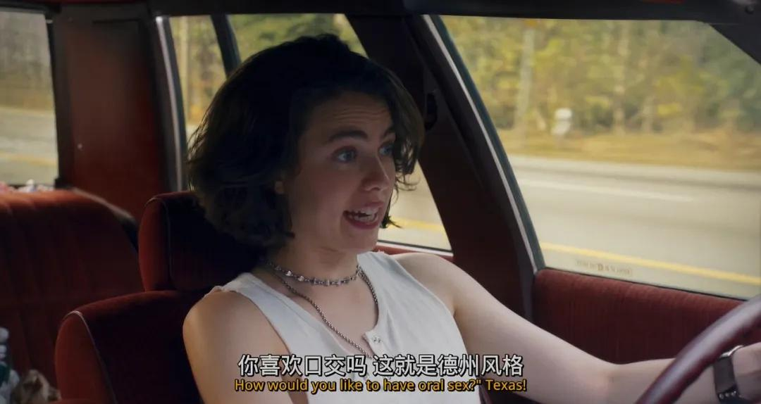 本文把垂直蒙太奇(音乐和画面两种元素相辅相成,但并不完全的音画对位)和平行蒙太奇( 通过剪辑技巧,如迅速交替和转场,创造出紧张的节奏和强烈的戏剧效果 )抛在一边,来讲讲Drive-away dolls里面通过段落间的来填满“空缺”形成的隐喻作用。