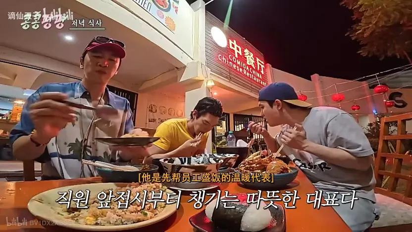 如前所说,《豆豆笑笑》的世界观是建立在一间虚构的食品公司上,李光洙是理事、都暻秀是负责产品研发的本部长、金宇彬是管钱的监察。通过这重设置,让这趟旅行有了充分的动机——不是三位明星去穷游,是KKPP的三名员工为了公司做大做强而努力。