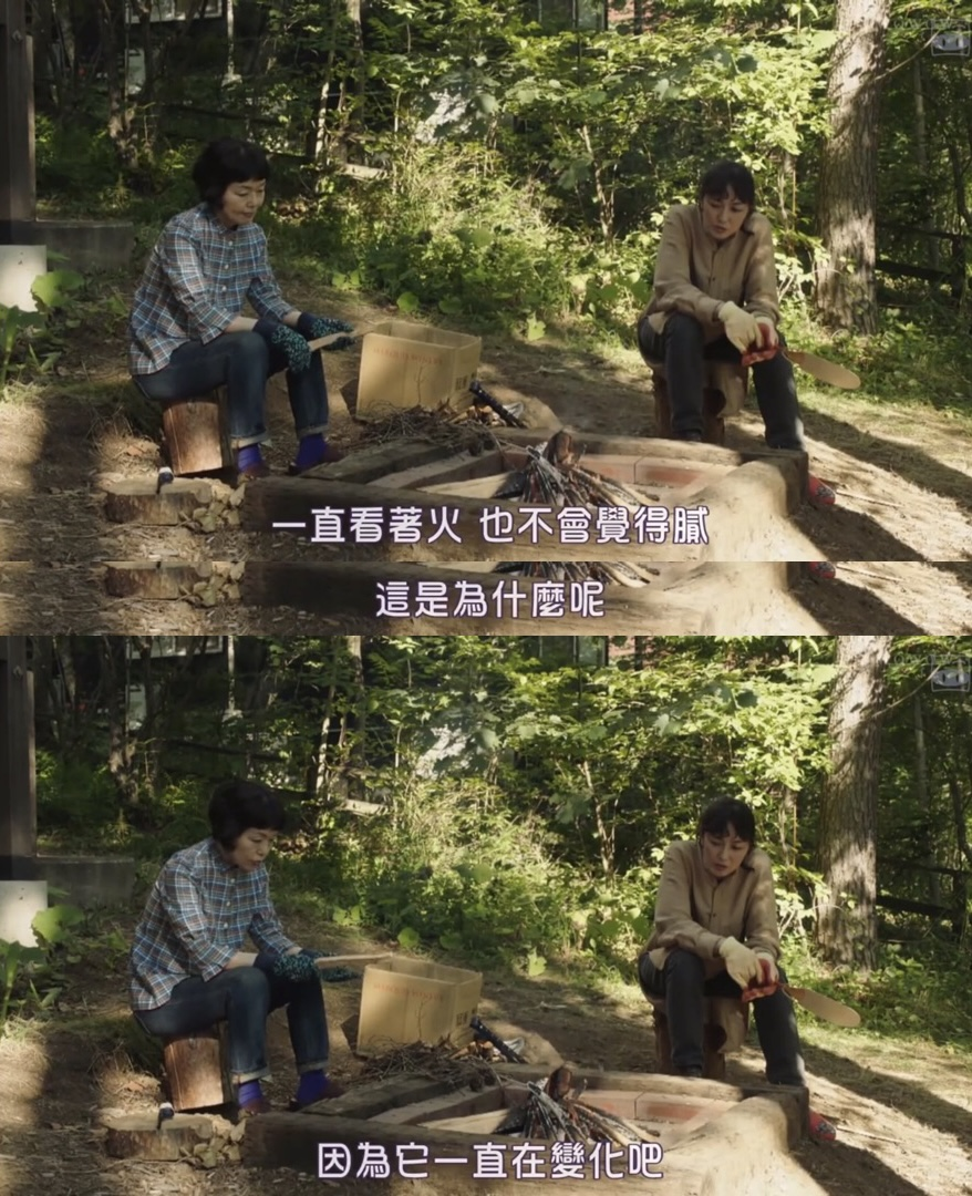 看完最后一集,更能知道这部剧安排在森林进行的缘由。森林和民宿,就如同自然和人,人在自然中生息,接力般交迭。民宿的管理者从典子到了女孩,之后也会轮换到他人,民宿也有可能成为餐厅或者别的形式。未来的不确定性和非永恒是个体的人要面对的终身话题,令人苦恼但也有趣。而自然在四季变换中永续。就像是那位穿着漂亮蓝色裙子的奶奶总是平和的注视着,贯穿全剧,如同森林的化身,在给与人类温柔的慰藉,就如同第二集里盖在露营老爷爷身上的毛毯。