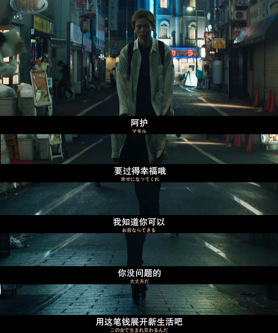 第一段的林裕太最为单纯,涉事最浅,其视角看到、感知的犯罪世界也就最为美好。他在犯罪世界中获得了最单纯的友情与物质,一切在他的眼中是纯粹的美好,即人设中“离开八王子市而进入东京”的人生重启。这一段呈现了最光鲜的犯罪生活,不仅是盗取身份小组的友谊,纵情享乐的东京生活,也包括了对“犯罪”本身的美化:开篇中卖出身份的前田只是一个色鬼,是“无需同情”的存在,而倒卖身份的犯罪也被描述为“两年后归还,小心点就好”的事情。