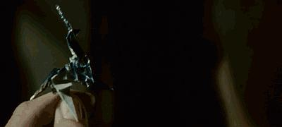但是他依然爱好折纸,最后他折了一只羊。这只羊就是致敬作者菲利普.K.狄克的《仿生人能梦见电子羊吗》一书(银翼杀手原著小说)。