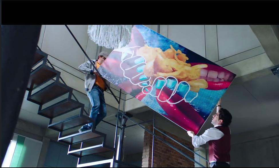 豪宅客厅里有一幅印象派的画,烈焰红唇炸鸡腿。