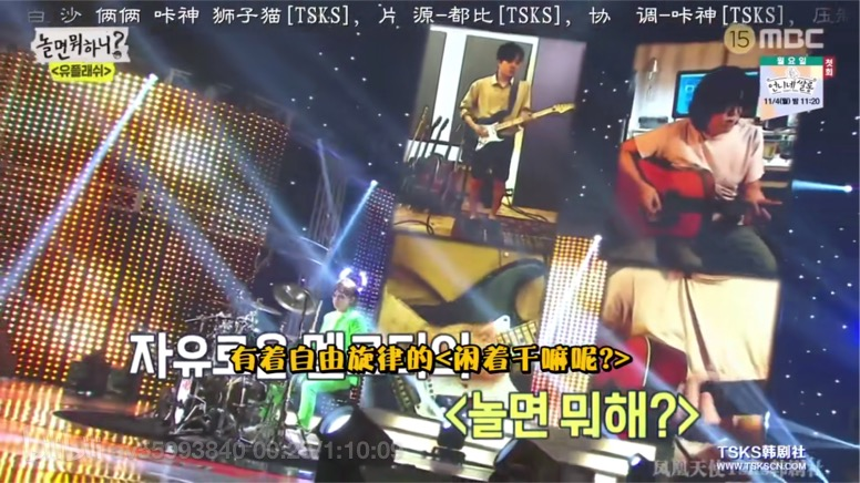 E032(38:40开始)邀请金光珉(MC)——HYUKOH(就是有吴赫的那支乐队)表演服太搞笑了——《妈妈咪呀》音乐剧