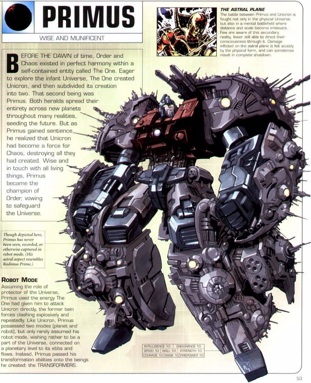 在2007年出版的[变形金刚终极指南]中,宇宙大帝和元始天尊的创造者成为元神,The One。