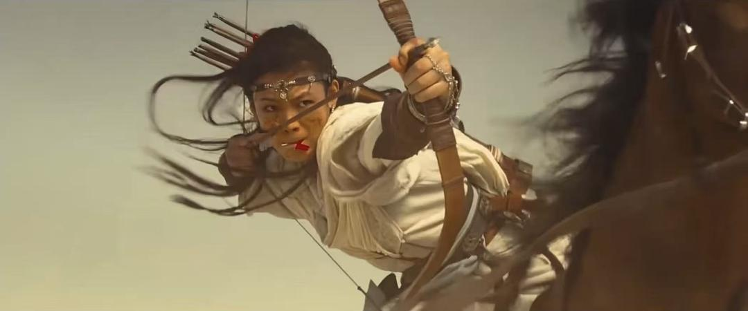 阿育娅有一场戏我印象特别深刻,就是四族联军追杀刀马一行,刚知道父亲被杀的阿育娅失魂落魄、满脸是血地坐在马车里。她问乌噜噜的姐姐蜜儿,自己的父亲是怎么死的。结果这个和伊玄的梦女大骂老莫糊涂,害了整个大漠,活该被“我的玄”砍头。于是阿育娅知道四大家族的长老都背叛了父亲,决意让他们给父亲陪葬,接着她就从车里钻出来跳到马上,砍断了连接马和车的皮绳,跟刀马说:“你不要阻拦我!”转身朝四大家族的追兵而去。当时大沙暴已经遮天蔽日,宛若数百的龙卷风,而这个女人伏在马上,手持弯弓,目视仇敌,大喊着:“我是大沙暴!”那一瞬间,你会感觉看到了女王。