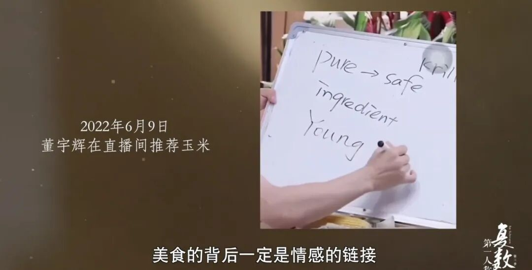 n比如当天在卖玉米时,董宇辉并没有一直讲述产品的信息,而是从玉米出发,带大家回忆了童年吃玉米的一些具体的场景。n那些无忧无虑、虫鸣鸟叫、夕阳西下的回忆片段,引起了观众某种程度的共情,从而转化为了流量。n正如董宇辉所说:美食的背后一定是情感的链接。n