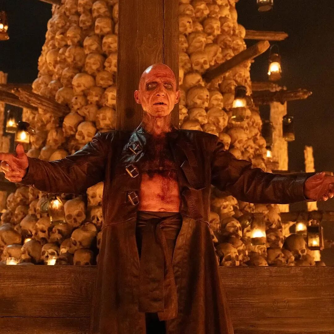在《白骨圣殿》的表演与艺术呈现中,出现了某种近乎奇迹的化学反应。如果说达科斯塔提供了骨架,加兰提供了血液,那么以拉尔夫·费因斯为首的演员阵容,则为这部电影注入了那股狂野、哀伤且“金属感十足”的灵魂。