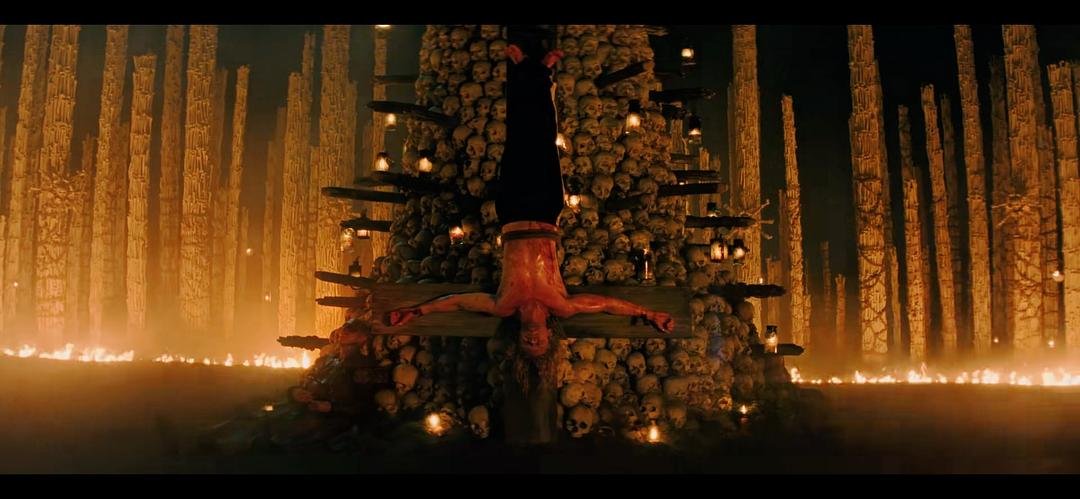 影片的高潮以一场发疯似的仪式为启动。音乐在这场戏中成为主要工具,Iron Maiden乐队的重金属音乐The Number of the Beast非常直给地贴合撒旦崇拜主题,同时也制造一种“狂欢式恐怖”的反差。