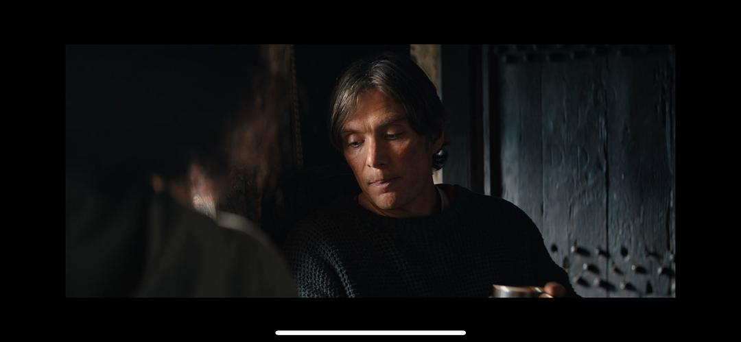 《白骨圣殿》大量在诺森伯兰郡和苏格兰边境取景。从圣库斯伯特洞穴到基尔德森林,达科斯塔利用了这些地带特有的、带有维京历史沉淀的荒凉底色,让影片的每一个镜头都像是一幅古典主义的油画。