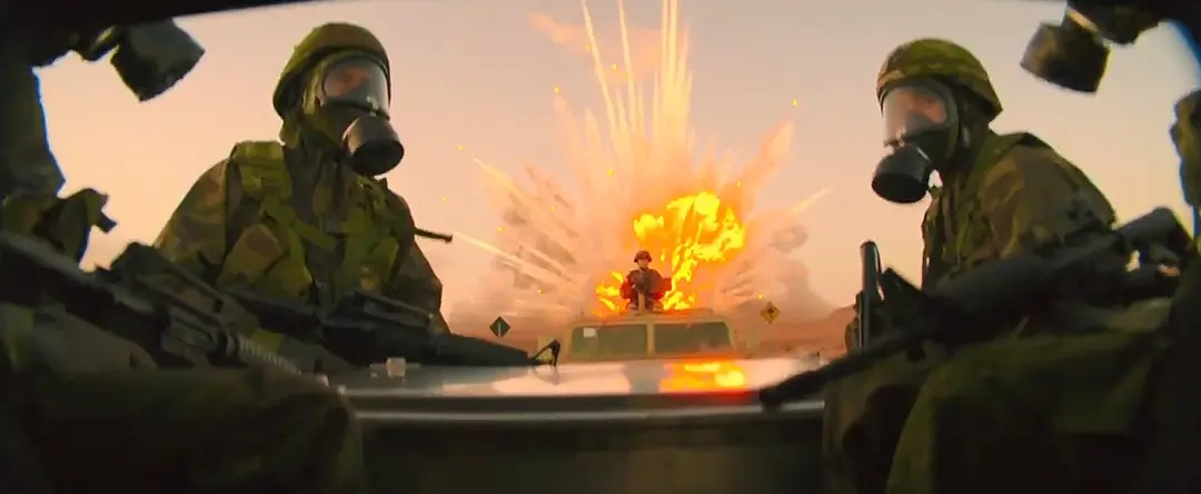 他饰演的生化特工带着一种“我真的累了,快点毁灭吧”的倦怠感,这种干巴巴的幽默配合乔·基瑞(《怪奇物语》里的 Steve)那种呆萌的表演,产生了一种奇妙的化学反应。这比那些强行堆砌动作戏的爆米花要高级得多,它证明了:哪怕没有 4 亿预算,只要演员化学反应够好,电影照样能让人看得很爽。