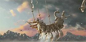 巴霍巴利(爹)带公主回家的时候驾驶的飞鸟船,翅膀还能转360度。
