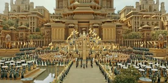 但是,3.3亿人民币的印度制作,凭良心讲还是相当不错的!两个主城特征明显,巴霍巴利所在国家的主城,暗色调,繁复宏大