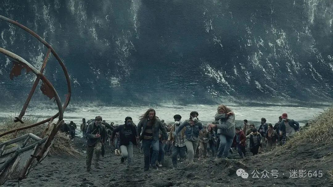 创作思路很简单,叙事也很工整,大框架就是末日灾难背景下的家庭公路之旅,不时穿插风雨雷暴、海啸浪潮、陨石划空、地震崩塌以及横跨(而不是横渡)英吉利海峡等视效场面,甚至还加入了悬崖险渡、夜间枪战、悍匪劫车等动作戏码,每五到十分钟就会有一出视觉戏份,观感也就不至于无聊。