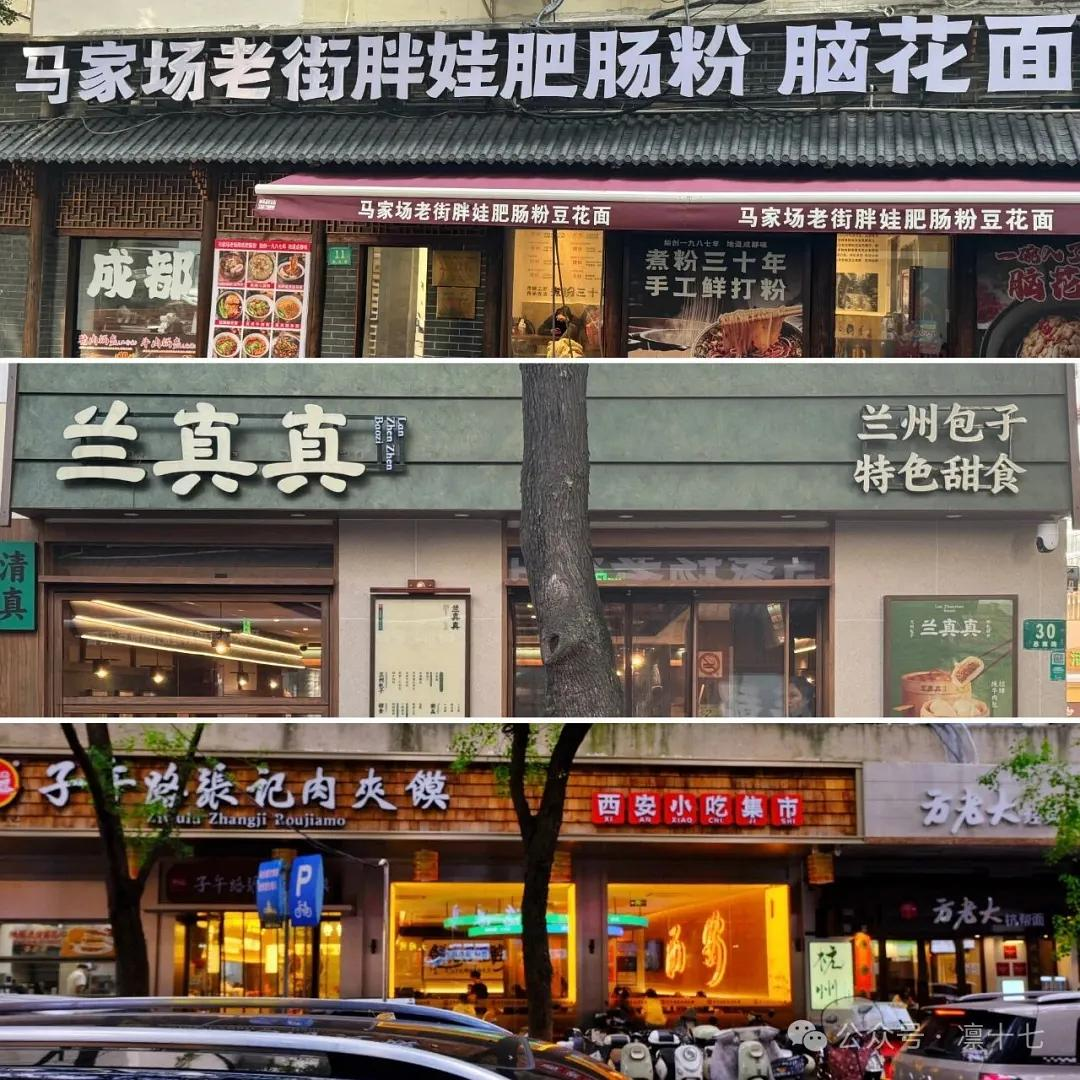 首当其冲的就是思南路。相比不远处虽然被张奶奶海参攻占但餐馆大都为本帮菜的雁荡路,思南路上原先勉强还有杭州的复兴面王,如今除了前面提过的沧浪亭,已经被西北的连锁餐饮(预制菜)攻占了。这几家店虽然没有瑞金路上新开的螺蛳粉那么臭气熏天熏到淮海路,但总让我觉得心里不是滋味。