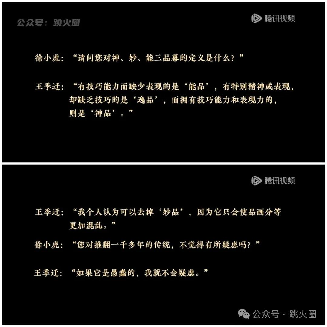 那么,观众该不该全盘接受呢?当然不应该!尤其是把徐小虎当作自己鉴赏“中国画”入门老师的那种(就像节目开始引导的那样)。打个也许不恰当的比喻,这就像是从网络小说开始认识文学史。