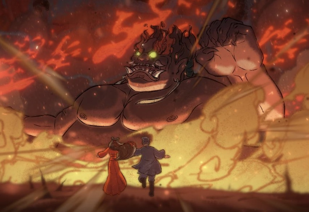 电影里非常值得一提的一段二维动画:当小倩二人被判官吸入封魂球之后,瑰丽的想象,让两个人在人鬼世界的纠葛变得具象起来。也跳脱出了三维动画的技术桎梏,回归漫画感瑰丽的想象。