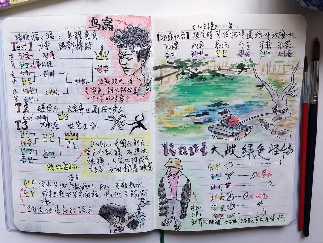 本来我是边看边随手涂摘,后见实在有趣,不如做本《二天一夜第四季》手帐吧,上传,分享同好。