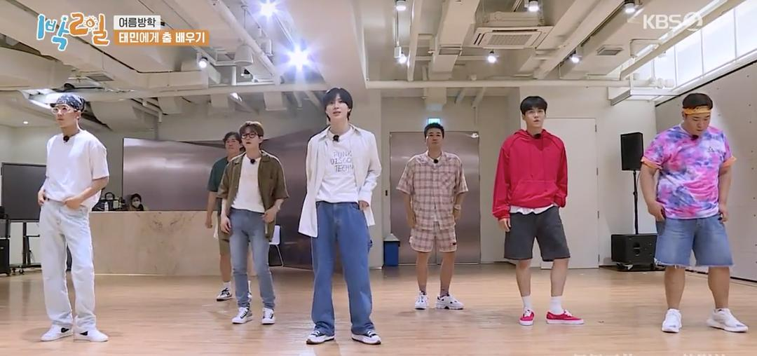 内容:成员自主安排的暑假特辑,打篮球、去便利店吃拉面饭团、游戏厅打游戏确实很学生时代的暑假了,能够去音乐放送节目看到明星、有泰民舞蹈教学确实不是一般学生能拥有的暑假,放假的同时为父母烧一顿晚餐以敬孝道也是不错的,最后学习检查时金钟民投篮实力炸裂!