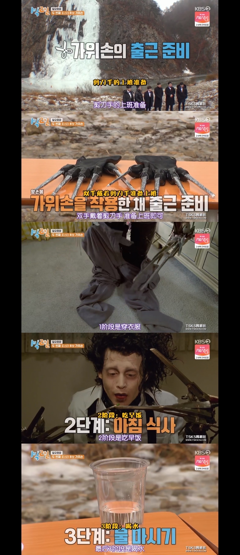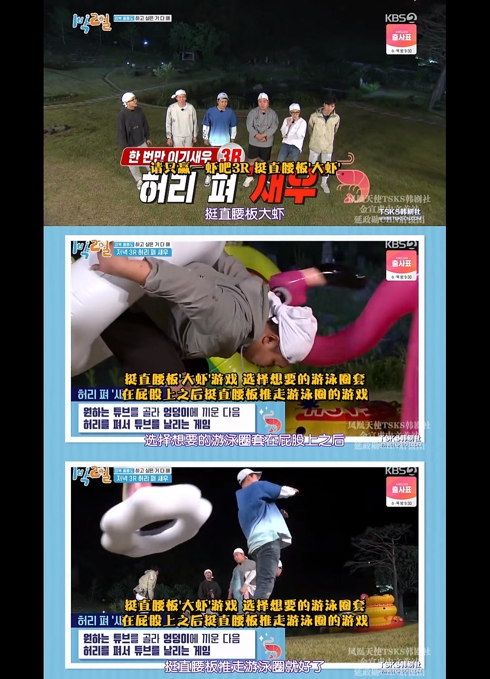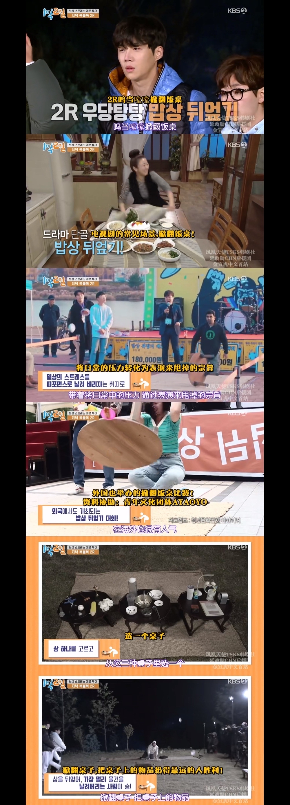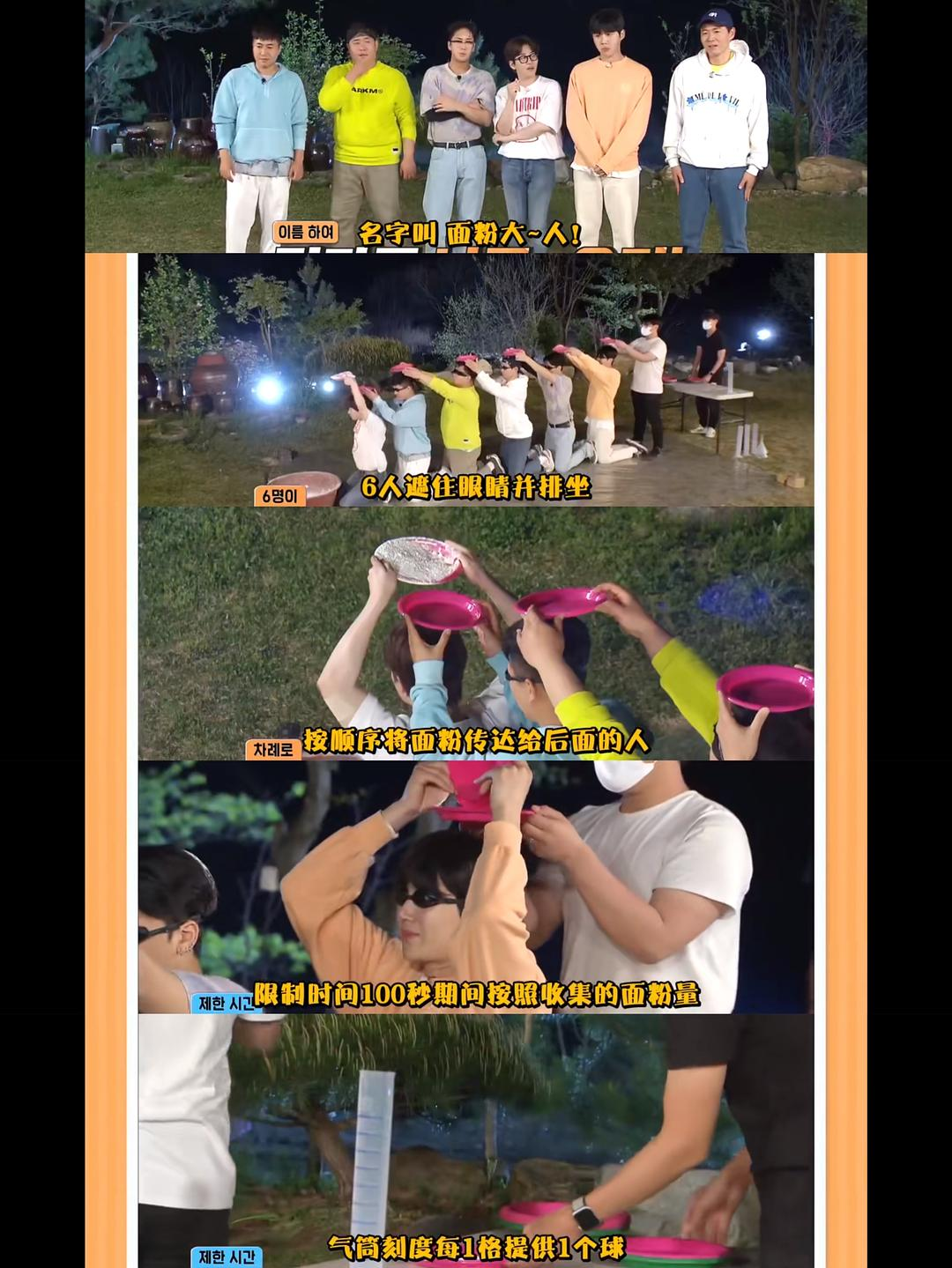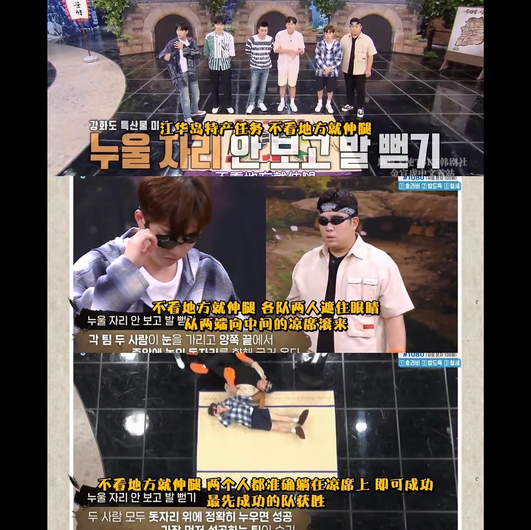 内容:通过弥补成员不足的游戏收集部落动物,动物多的一队室内就寝,动物少的一队睡在530m高的首尔最高楼楼顶开放露台。最后文世润用蓝牙音箱完成了一个搞笑小品,真的绝了!!