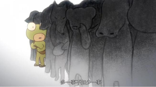 小壁虎被蛙老大抓住悬在半空,旁边有一群躲在阴影里不敢出声的小动物,阿虎听了大家的议论后害怕地退回到了人群中。那一瞬间,彩色的它立马变成和其他小动物一样黑了,这对比好扎心啊,像极了生活里只会默默忍着的我自己,明明看到不公平的事儿有一大堆情绪,却只能躲在暗处不敢站出来说一句“不”。