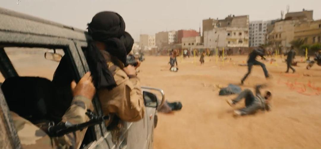 战斗机上的政府军,看到萨利姆对马笑的车狂追不已。为了保护马笑的安全,他们杀死了萨利姆。