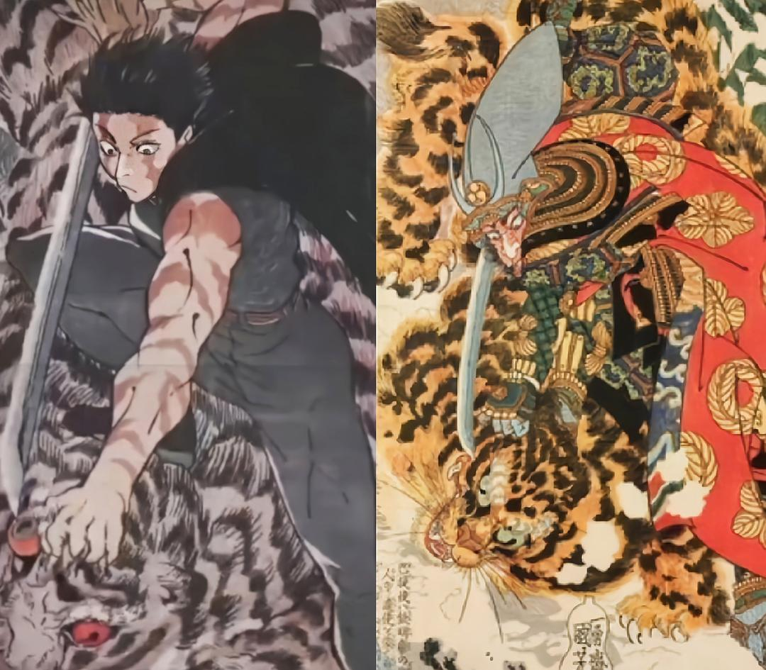 OP画面:天与暴君禅院真希n 致敬艺术作品:日本江户时代晚期浮世绘大师歌川国芳《本朝水浒传豪杰百八人:膳臣巴提使》n 原作中膳臣巴提使在异国他乡(朝鲜)孤身打虎的英勇姿态与"天与暴君"真希以凡人之躯挑战腐朽家族和强大咒灵的决绝形象在视觉构图上高度一致,画中膳臣巴提使拔刀的力量感与斑斓虎皮背景形成的张力也呼应了真希画面的动态风格,所致敬作品的英雄叙事内核与其斩断家族诅咒、向命运发起挑战的精神内核完美契合。n (网上流行的说法是致敬了歌川国芳的《本朝英雄傳:牛頭天王与稲田姫》,或许是因为天与暴君的设定和象征致敬了须佐之男命,不过单从画面呈现相似度来讲,这里致敬的很明显是膳臣巴提使)nn OP画面:“纯爱”战神乙骨忧太n 致敬艺术作品:日本江户时代晚期浮世绘大师歌川国芳的作品《甲越勇将传 武田二十四将》n 画中,森弼(森武藏守政恭)冲锋于战场前线,身后是风卷旗扬的战阵,一派热血沸腾的战国氛围。背景以浮世绘特有的奔放线条与构图强化动感,体现出武士的英勇与忠诚。森弼作为武田军先锋,那种明知前路凶险仍一往无前的冲锋姿态,正是乙骨为了守护而甘愿背负诅咒、以命相搏的精神写照,而浮世绘中奔放的线条与热血沸腾的战阵氛围,也与乙骨在现代咒术战场上以“诅咒对抗诅咒”的激烈场面达成了视觉与精神的双重共振。n (网上同样流传这里致敬的是《太平记英勇传:和田平泷长》,理由同上,大家可以自己搜来看)nn OP画面:羂索孕育虎杖悠仁n 致敬艺术作品:奥地利表现主义分离派画家埃贡·席勒《死去的母亲》n 画中母体的死亡与腹中胎儿的存续构成了一种“以死为生”的扭曲生命形态,这正对应着虎杖的诞生。他作为被两面宿傩选中的容器,从母亲腹中起就被诅咒之力浸染,其生命本质是死亡(诅咒)孕育出的新生,而席勒笔下那被黑暗漩涡包裹的、扭曲不安的人体轮廓,也隐喻着虎杖如同画作中的胎儿,从存在之初就被卷入了“九相图”所代表的生死轮回诅咒中,他的诞生本身就是一场生与死、诅咒与存续的剧烈撕扯。nn OP画面:夜蛾校长与熊猫n 致敬艺术作品:法国印象派画家克劳德·莫奈《卡美伊·莫奈和孩子》n OP将原作中的母子替换为夜蛾和熊猫,以一种充满反差感的方式,把莫奈笔下人类最朴素的亲情升华为了咒术世界中以技术和意志创造生命的深刻羁绊。画面中繁花似锦的印象派背景,与他们超越师生的关系形成了强烈对比,暗示着即使在充满诅咒与战斗的残酷世界里,这份超越血缘的、纯粹的守护之情依然珍贵而宁静,正如莫奈画中那不受外界纷扰的家庭之爱。nn OP画面:乙骨忧太单刷仙台啃蟑螂????n 致敬艺术作品:奥地利象征主义画家古斯塔夫·克里姆特《吻》n (我只能说这段好猎奇……不要呀!为什么这种猎奇名场面至今的是我超喜欢的艺术作品?!????)nn OP画面:水中的禅院真依n 致敬艺术作品:英国拉斐尔前派画家约翰埃弗里特·米莱斯《奥菲莉娅》n 真依漂浮水中,手捧鲜花,姿态平静却暗含着悲伤。这种致敬将她的命运与奥菲莉娅的悲剧直接对应,最终都因无法掌控的命运走向了悲剧结局。nn OP画面:禅院真希和禅院真依(幼年体)n 致敬艺术作品:彼得·保罗·鲁本斯《两个熟睡的孩子》n 鲁本斯的原作描绘了两个孩子在沉睡中共享的宁静与信任,象征着纯粹、未被玷污的亲情与依赖,而禅院家姐妹的命运却与原作的宁静形成了残酷的反差。这种致敬将鲁本斯笔下那份无条件的爱与守护转化为了姐妹二人在充满诅咒与歧视的家族环境中,彼此成为对方唯一依靠的深刻情感,同时也暗示了这份纯真终将被残酷的现实打破,为她们日后的悲剧命运埋下了伏笔。nn OP画面:死灭回游突围队n 致敬艺术作品:押井守《攻壳机动队》公安九课n 除了视觉上的相似,两者在精神内核上也形成了共鸣。公安九课是一群改造人、义体人组成的精英团队,他们在高度发达却充满危机的未来社会执行任务,身份和存在本身就充满了矛盾和孤独。而《咒术回战》中的角色们,则是一群背负着诅咒的“咒术师”,他们在现代社会的阴影里与诅咒战斗,同样是一群与主流世界格格不入的“异类”。nn OP画面:崩溃的真希真依妈妈n 致敬艺术作品:挪威表现主义艺术家爱德华·蒙克《呐喊》n 她如《呐喊》里被无形恐惧与压抑裹挟的灵魂,一生困在底层泥沼,畏服权势,奴颜婢膝,用欺凌弱小转嫁屈辱的模样,正是现实里无声呐喊却只能以扭曲姿态宣泄痛苦的写照,可怜又可恨nn OP画面:虎子与伏黑惠的领路人在分叉路分道扬镳(看的不太清楚,大概是这个吧)n 致敬艺术作品:日本波普艺术大师横尾忠则《Y字路》系列作品n 这种致敬将横尾忠则作品中个体在时代洪流中的挣扎具象化为了两位主角的殊途同归nn OP画面:乌鹭亨子(这位姐好冷门……差点忘了她是谁)n 致敬艺术作品:前卫摇滚乐队Pink Floyd平克弗洛伊德的知名专辑《The Dark Side of the Moon月之暗面》n (这个我纯猜的哈,不听摇滚的人应该认为是牛顿的三棱镜彩虹实验,但本滚批一眼就想到了这张专辑……????????????????)