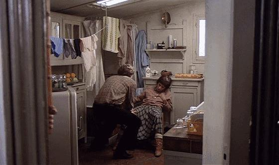 忍无可忍的丈夫给了女人一巴掌,女主立刻像一只受伤的猫倒在他怀里呜咽。陈小姐觉得这是全片最精彩的一笔。