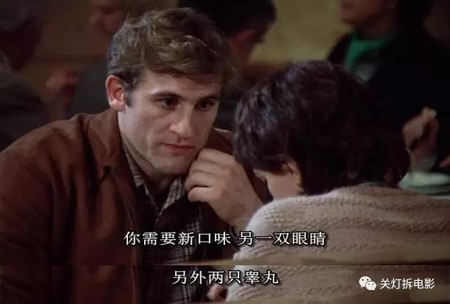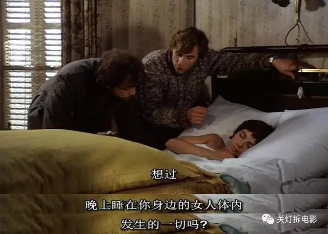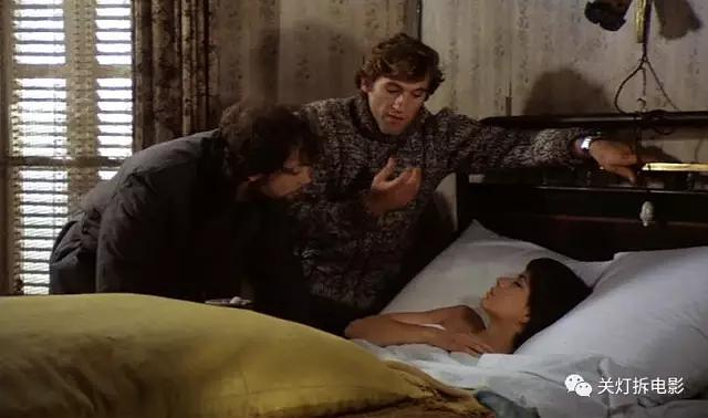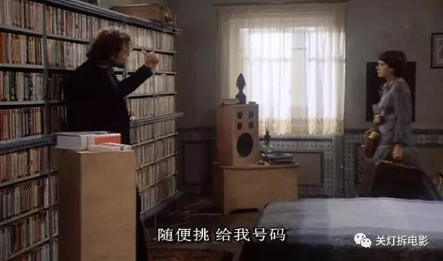 接下来,这部1978年的影片为观众呈现了一幕经典的场面。莫扎特的交响乐中,男女主人公坐在床上,5000册藏书是他们的背景,寂寞而忧伤的女主角用粗棒针织着一件男士毛衣,她的情人在一旁喃喃倾诉爱意。