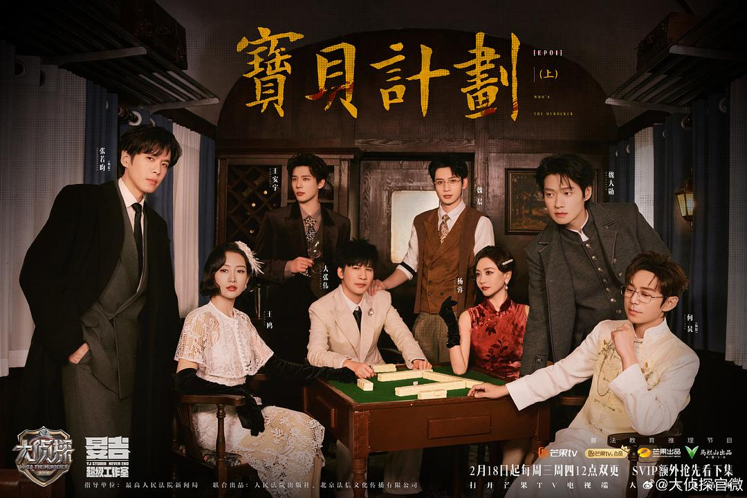 20260218第1期:宝贝计划Ⅰ。嘉宾:侦探何炅、张若昀,嫌疑人大张伟、王鸥、魏晨、杨蓉、魏大勋、王安宇共8位。合议庭:齐思钧。全员失忆,一同破案找马甲,其实说到私会两个词就不可能是儿子儿媳妇,只能是公公儿媳妇,要不然用不上私会这个词啊,可惜老侦探反应真的很慢,只有王安宇反应过来了。另一个高光是逻辑怪张若昀发现的滑轨天花板,在魏大勋质疑后仍坚持自己的观点去现场发现了机关。魏晨都那么坏了,出轨儿媳妇,倒卖文物,炸毁大桥,居然只有何老师一个人投他,怎么都死机投杨蓉去了?第一期魏晨获得6枚徽章。