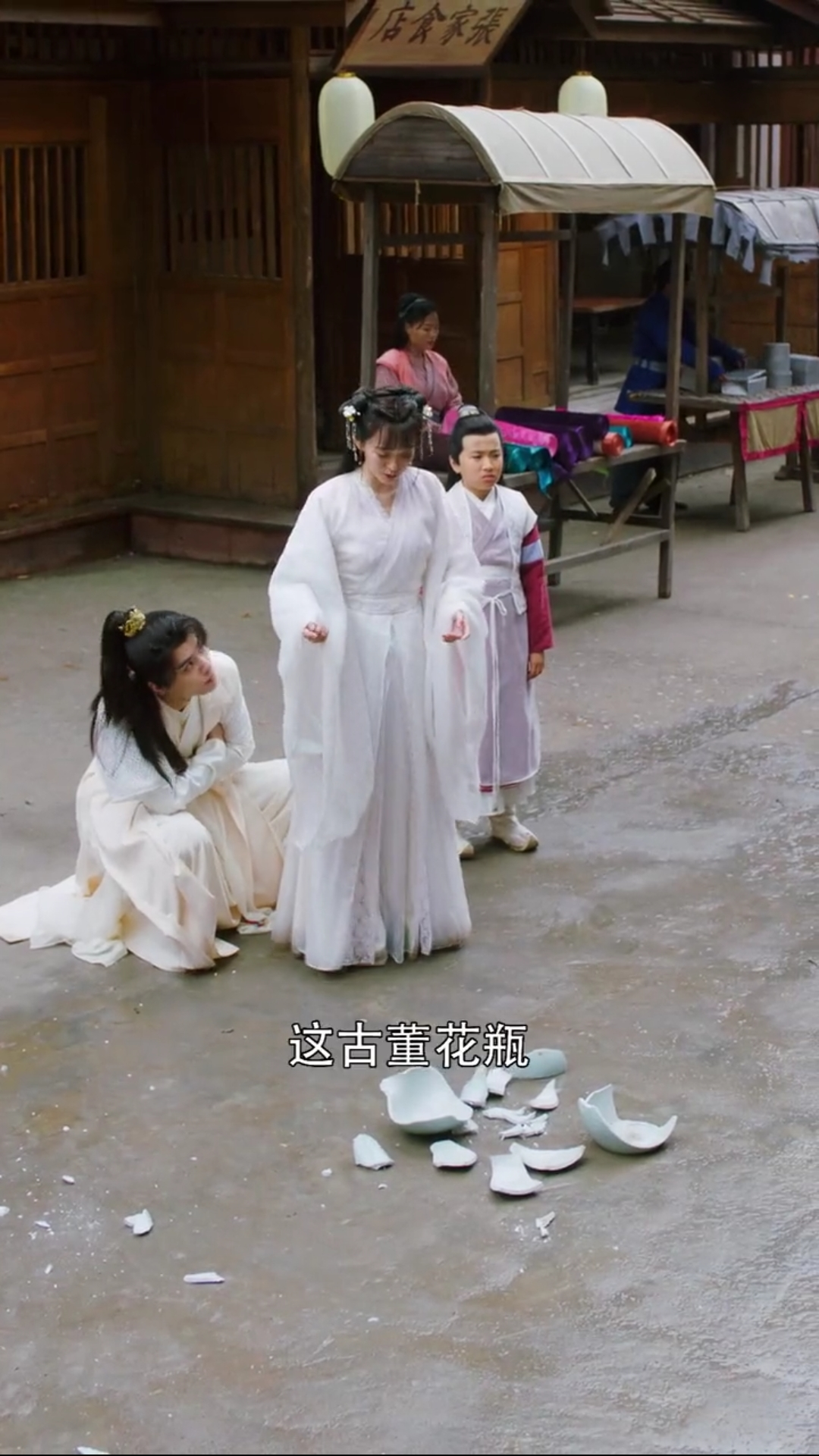 女主门口偷听男主和白莲花、大绿茶,喝了一会茶。路上被暗算,倒地就没了,属实晃我一下子哦。