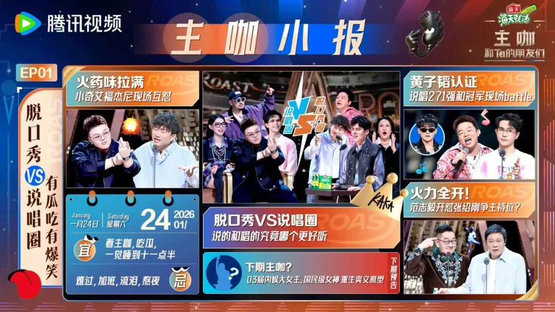 孙佳璐:腾讯视频从2025年初开始筹备《主咖》,七盎司工作室做脱口秀赛道很多年,从《脱口秀大会》到《脱口秀和Ta的朋友们》一直和笑果合作。《主咖》和《脱友》是两个制作类别,《脱友》是为专业脱口秀演员提供职业竞演舞台,核心是演员的自我表达;而《主咖》更偏向名人脱口秀这种表演形式,主角是各界公众人物。