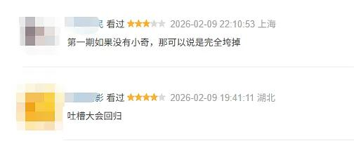 不同于我对隔壁《今夜喜友秀》看一期骂一期发的影评,主咖我十期看完了才说的n我会说我个人对每一期的评价和整体汇总以及一些观影推荐nn先说总体吧,如果单论这当节目,我可能觉得8分上下吧,有好看的,有无聊的,反正我笑得还算多n整体瑕不掩瑜,还是可以看看的至少及格以上甚至优良的水准,但是在对面那个烂到极致的节目的衬托下,我觉得主咖可以称为神作,真的,没开玩笑nn如果觉得我夸张了去看看对面节目就知道了nn然后每一期都说一说nn第一期n说唱专场Diss and loven整体挺搞笑的,开播有惊喜,脱口秀演员不用说挺好的,范志毅说脱口秀真的意外的好,几个rapper也都说得挺好的,小奇真的太棒了这场还是很推荐的nn第二期n人生不怕重头再来,刘晓庆专场n呼兰说得挺好的,晓卉也不错,嘉宾的话,真的牛在在和耿大勇完全就是通过这档节目认识的,太冷门的两个人了……但有一说一,牛在在讲的其实也还行,反正比我预期的好,我以为会和上过吐槽大会的那个不知名小鲜肉徐浩一样,没错我刚刚特意问了一下ai才想起他的名字n刘晓庆这里说的比在对面好了不知道多少倍,范志毅也好的,剩下的其实也还好吧,没有特别差劲的,反正都能听听n刘晓庆没有参与投票但是被选为talking真的蛮好玩的,节目效果这一块hhhn不算推荐但是可以看看,不算差nn第三期n乐子人主题n我个人其实不是很喜欢这场,感觉所有人说的都一样,来来回回就是吐槽张维伊那几个点和管乐房子乱,真敢说的话应该吐槽管乐把粉丝礼物送人却留着前男友的东西之类的,这点说的有但少,甚至是管乐自己在那来了个奇奇怪怪的道歉?反正我觉得没啥诚意n脱口秀演员依旧好的,谢依霖不错的,反正我挺喜欢她的hhh,颜安好不好笑不说,但是挺活泼的,讲的……说得过去?张维伊其实说的还行吧?范志毅说的也不错n武艺,说的挺无聊的……向佐,抽象依旧n整体,也算能看吧,凑活吧,不过记得把武艺跳过,搞笑的还是脱口秀演员,剩下的无功无过,不过管乐最后两分钟也跳过好了,吐槽大会又不是道歉发布会nn第四期n中女专场n脱口秀演员说的不错,鸟鸟真的太好了,步惊云也不错,刘德华(江梓浩自称)也还行吧,反正对比当年有进步hhh,宋祖儿前面这一段挺好玩的,剩下的……黄圣依还行?然后……没啥好说的搞笑点但是不多n最后talk Queen好评n整体还不如第三期,粉丝去看,不是粉丝的看看脱口秀演员也就差不多了,反正我不太喜欢嘉宾的人生小感悟nn第五期n老年人专场n老人就是放的开,真吐槽啊n其实说的都还可以每个人还都有自己独特的风格,但是你说有多好笑呢,也没有吧,不过能看nn第六期n高光时刻专场(没有关系的一群人专场)n两个搞电竞的就是看着提词器念稿,差评,然后我没关注过这种,他们的梗我不懂,全程基本没怎么笑n蒲熠星我都没想通他来这干嘛,不应该在什么类似于最强大脑的节目吗,不过讲的其实还行但是槽点用的是大冰的梗……挺奇怪的n整场最好笑的就是小奇吐槽蒲熠星,还有赛级广东人仁科,真的太好玩了hhhn范志毅也还好吧,没前几期那么好但也没有特别差n林书豪,国语还行吧,不要为难abc了,能完整的较为流利的说出稿子就还行了n整体还行吧,电竞的两个人是这个圈子的看不是的就跳过,小奇和仁科的看看,还有何广智,范志毅也可以,林书豪和蒲熠星也还行吧?看个人喜好了nn第七期n谢谢(好像是这个吧?反正也像是临时凑的一帮人)n何洁真的好爱乐啊,真的一直笑。讲的不错的依旧是脱口秀演员,漫才兄弟比我想象的好,看到他们的时候还疑惑漫才怎么吐槽,反正最后效果不错,高寒的话这一场就指着阎鹤祥骂啊,但阎鹤祥本身槽点也不多,所以这一场个人认为高寒表现不算好的,剩下的就没啥好说的,阎鹤祥的脱口秀我一直说不上喜欢,一直觉得没啥梗,然后苏醒好帅hhhn何洁讲的不错的n整体也就是能看的水准,其实不看也行,这期和乐子人那期差不多,也就几个点来回说,没意思nn第八期n音乐专场n腾格尔还行吧,主要是喜欢大爷,两个脱口秀演员都不错,我以为贾耗是比较客气的那种人,结果说的挺好的,者来女挺放的开的,然后白小白和梁源我是爱看的,但我不知道没有看《有歌2》的人能不能看得懂,反正我觉得应该可以吧?没有什么需要解释的梗,白小白说的不错的,梁源……梁源你道歉,这是人身攻击(有歌的梗hhh)n总体这一期也还行吧,能看,也没有特别好,也没有特别差nn第九期n演员专场n哇塞,这一期真好笑,好评n全员表现都好,李雪琴和徐志胜怎么不算荣归故里呢?hhh脱口秀出来走的最远的两个人,李雪琴确实好像脱3出去后没怎么说过脱口秀了,有点生疏的,提词器看的挺明显的,不过还是很棒的,吐槽的也够狠,还有雪国列车,什么时代的眼泪啊n徐志胜真的,不忘本,他即使脱口秀水平下降也在比赛,他可以像李雪琴一样不来的,但他还在比还在说,这点真的很好,讲的也还是不错的n鸟鸟,文本届最严厉的母亲,文本真的太好了,希望她多上台好吗?真的很喜欢她n脱口秀演员好像就差小奇了,也说一下吧,真的很好啊,就是好笑,喜欢,然后范志毅也是依旧稳定发挥,不差的n严屹宽,意外不错,演员台词功底还是很好的,没想到他也是上海人,他口音真的几乎听不出来,和范志毅讲上海话那段我喜欢hhhn徐艺真,不看短剧不认识,就是这段脱口秀来说还挺好的,讲的不错,看起来有一种莫名的霸道感?讲的也是不错的,有笑点n纪凌尘,很迷惑的