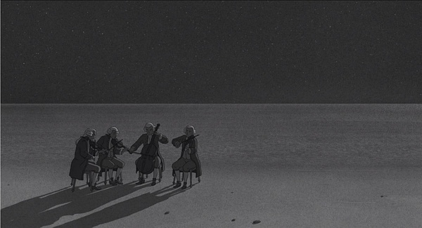 看之前大约只了解了本片的两个信息,无台词与极简的动画风格,于是我的期望大约就是是寓言或者童话类的暖心动画,然而看完的时候我完全不觉得这是一部简单的动画电影,其诉说的生命与相伴的主题在悠扬而略带哀伤的旋律里反复击打着我的心。